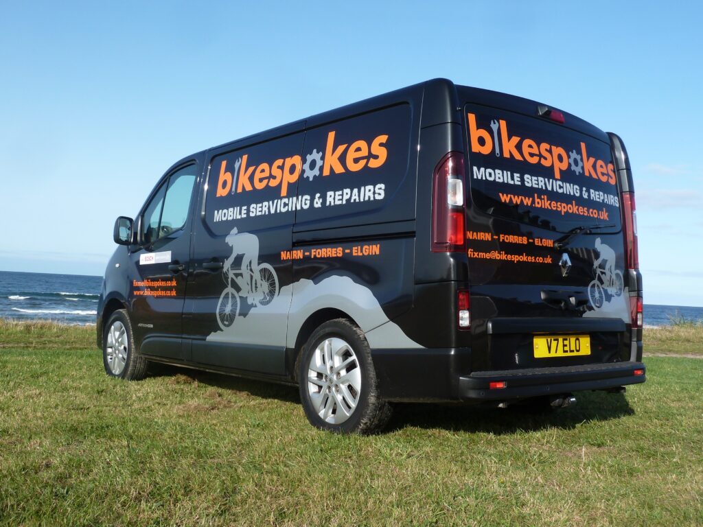 We are a van based mobile cycle repair service covering Nairn and Moray. We can come to your home or work to save you the hassle of getting your bike to a shop. Fully equipped to carry out everything from a puncture repair to routine servicing, or even a full rebuild. We carry a comprehensive range of spare parts in stock to ensure your bike is back on the road as quickly as possible.