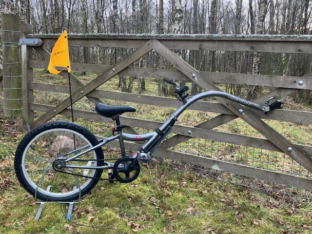 A great value and simple trailer bike with a single-speed drivetrain. Folds in half for easy transportation and storage. Mudguard and brand new Safety flag included for added visibility when out on the road.